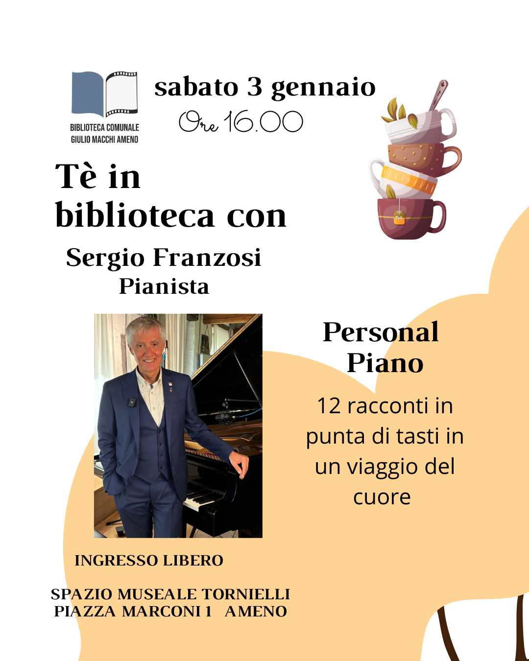 • Cosa: Concerto di Sergio Franzosi (presentazione album “Personal Piano”) con 12 lettrici e musiciste ospiti.